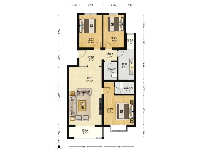 3室0厅2卫